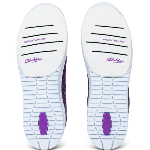 The KR Strikeforce Rhythm features a stylish and lightweight knitted upper. It also features a new, easy slip-on design with elastic laces with Komfort-Fit Construction. The CMEVA outsole is a light and comfortable fit with a silky smooth sock liner. Both shoes come with a number eight white microfiber slide pad on both shoes with FlexSlide Technology for right- or left-handed bowlers.